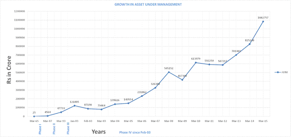Erstwhile UTI was bifurcated into UTI Mutual Fund and the Specified Undertaking of the Unit Trust of India effective from February 2003. The Assets under management of the Specified Undertaking of the Unit Trust of India has therefore been excluded from the total assets of the industry as a whole from February 2003 onwards.